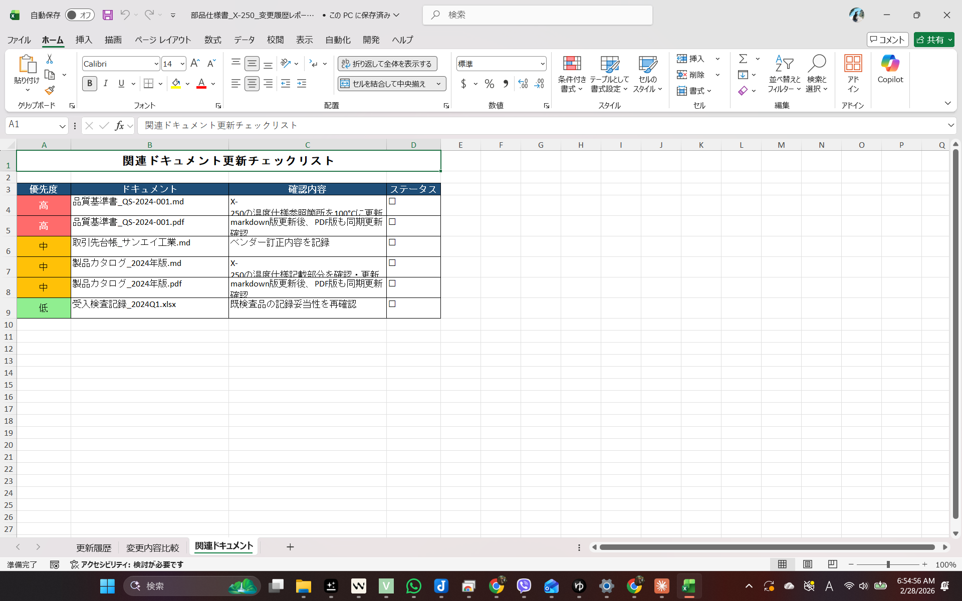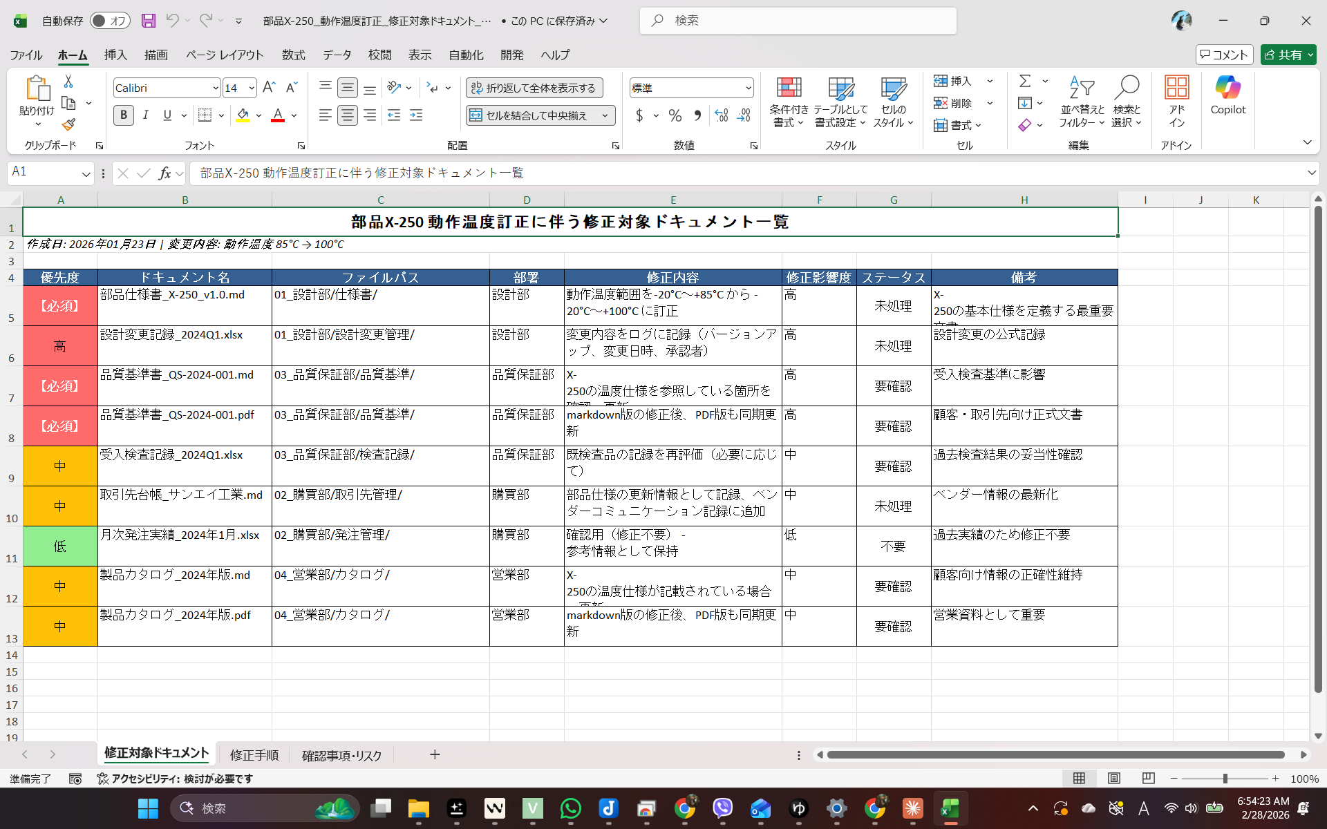 | 部品仕様書_X-250 | 設計部 | high | 購買部, 品質保証部, 営業部 |