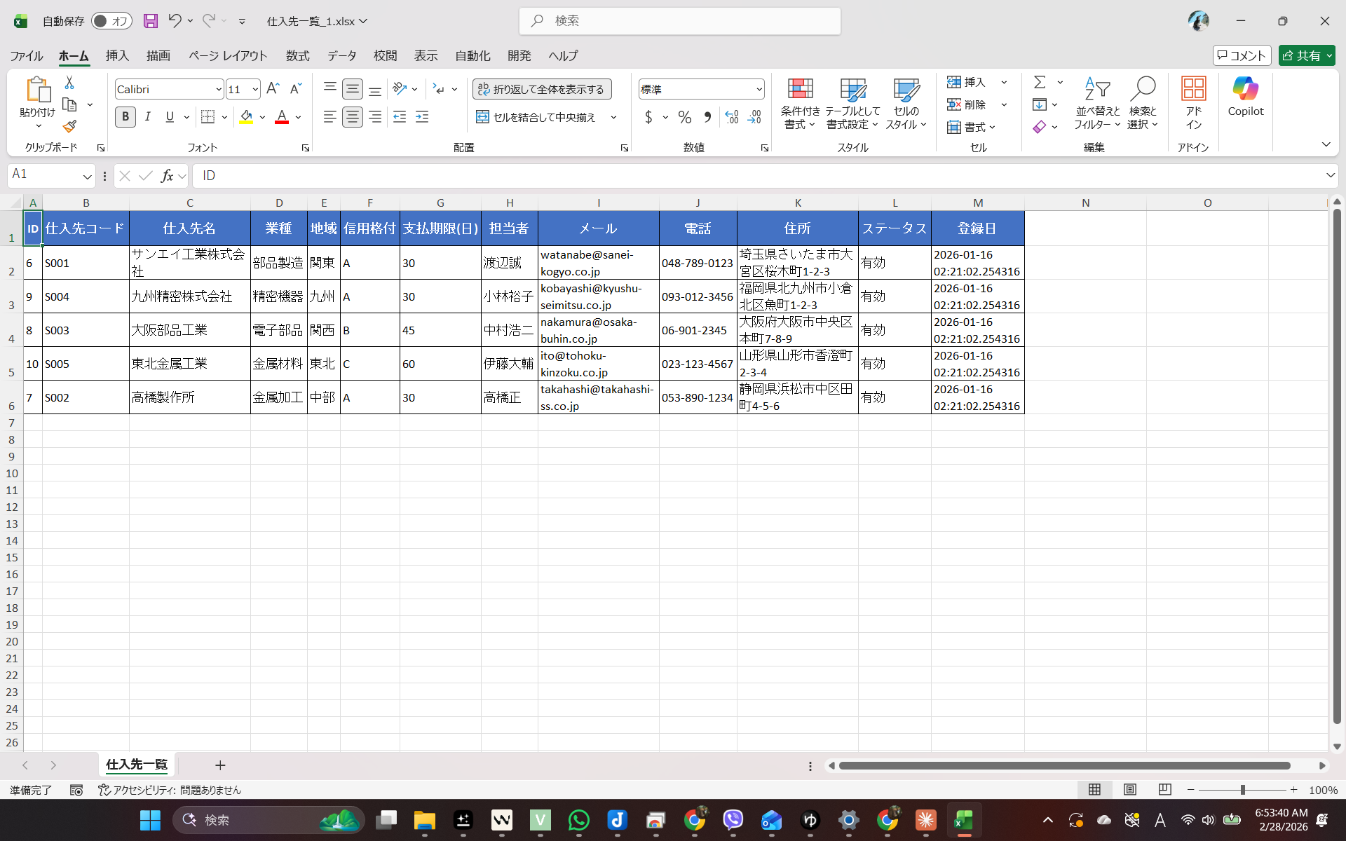 状況: 部品X-250の調達先を「サンエイ工業」から「タカハシ製作所」に変更する必要が生じた