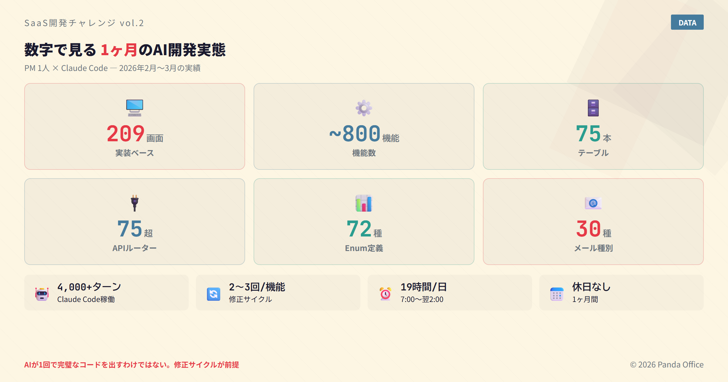 | Claude Codeターン数 | 4000ターン超 |
