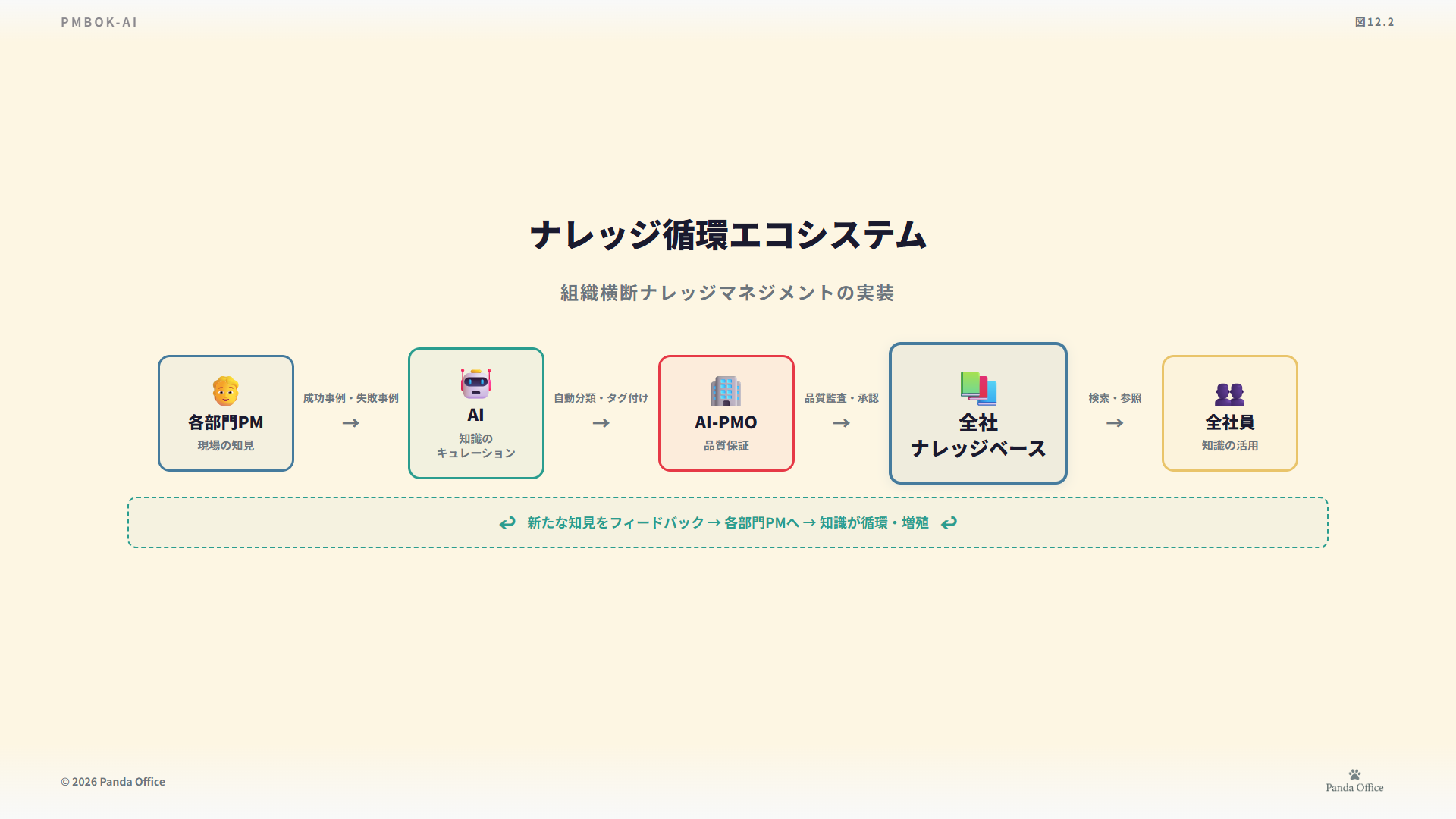 PMBOK-AIは、社会的PMBOK-AIの哲学をその基本理念とドメイン構成に統合します。例えば、「3. ドメイン構成」の「価値マネジメント」は、AIによる社会課題分析や解決策の継続的最適化を通じて、社会的な価値創出をPMが主導することを意味します。また、「リスクとレジリエンス」は、AIが潜在的な社会リスクを予測・検知し、PMがAIと共にレジリエントな社会システムを構築することを示します。PMは、AIを社会課題解決の強力なパートナーとして活用し、社会全体の福祉と持続可能性を飛躍的に高めます。